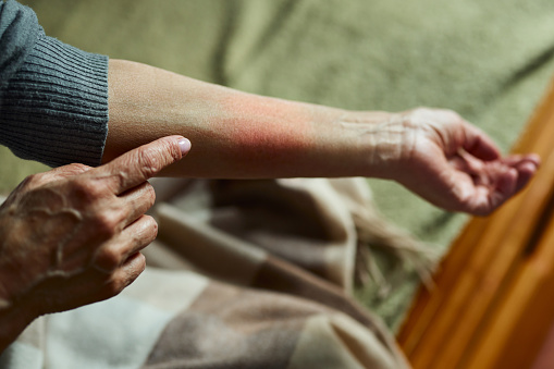 ๋ฌผ๋ฒผ๋ฃฉ์ ๋ฌผ๋ฆฌ๋ฉด ํผ๋ถ์ ๋ถ์ ๋ฐ์ ์ด๋ ์์ ๋ฌผ์ง์ด ๋ํ๋๋ฉฐ, ์ฌํ ๊ฐ๋ ค์์ฆ๊ณผ ํต์ฆ์ด ๋๋ฐ๋ฉ๋๋ค. ์ผ๋ถ ๊ฒฝ์ฐ์๋ ๋ฌผ๋ฆฐ ๋ถ์๊ฐ ๋ถ๊ฑฐ๋ ์ผ์ฆ์ด ๋ฐ์ํ ์ ์์ต๋๋ค. ๋ฌผ๋ฒผ๋ฃฉ์ ์นจ์ด ํผ๋ถ์ ์นจํฌํ๋ฉด์ ์๋ ๋ฅด๊ธฐ ๋ฐ์์ ์ผ์ผํฌ ์๋ ์์ผ๋ฉฐ, ์ฌํ ๊ฒฝ์ฐ ๋ฌผ์ง์ด ์๊ธฐ๊ณ ๋ฌผ๋ฆฐ ๋ถ์๊ฐ ๋ถ๊ธฐ๋ ํฉ๋๋ค. ์ด๋ฐ ์ฆ์์ ๋ฌผ๋ฒผ๋ฃฉ์ ์นจ ์์ ์๋ ๋ ์ฑ ๋ฌผ์ง์ด ์์ธ์ ๋๋ค.
