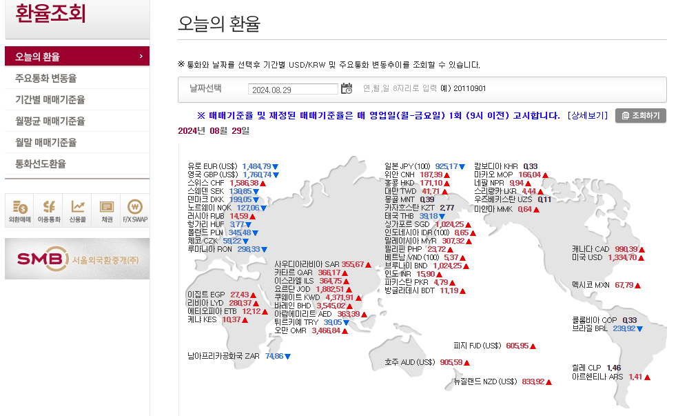λλ€. μλ¨μ 'νμ¨μ‘°ν' λ©λ΄λ₯Ό ν΅ν΄ μ€μκ°μΌλ‘ μ¬λ¬ κ΅κ°μ νμ¨μ νμΈν μ μμ΅λλ€.
