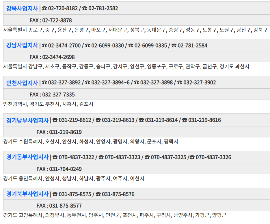 μμΈ(κ°λΆ, κ°λ¨ μ¬μ μ§μ¬), μΈμ², κ²½κΈ° λ¨λΆ, λλΆ, λΆλΆ μ¬μ μ§μ¬ μ°λ½μ²λ μλ κ° μ¬μ μ§μ¬λ‘ μ°λ½νμλ©΄ λΉ λ₯΄κ² μλ΄ λ°μΌμ€ μ μμ΅λλ€.