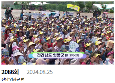 '์ ๊ตญ๋ ธ๋์๋'์ ํ๊ตญ์์ ๊ฐ์ฅ ์ค๋๋ ๋ ธ๋ ๊ฒฝ์ฐ ํ๋ก๊ทธ๋จ ์ค ํ๋๋ก, 1980๋ ์ ์ฒซ ๋ฐฉ์ก์ ์์ํ ์ด๋ ๊พธ์คํ ์ธ๊ธฐ๋ฅผ ์ด์ด์ค๊ณ ์์ต๋๋ค. ๋งค์ฃผ ์ ๊ตญ ๊ณณ๊ณณ์์ ๋ค์ํ ์ฐธ๊ฐ์๋ค์ด ์ถ์ฐํด ๋ฉ์ง ๋ฌด๋๋ฅผ ์ ๋ณด์ด๋ฉฐ, ์์ฒญ์๋ค์๊ฒ ์์๊ณผ ๊ฐ๋์ ์ ํฉ๋๋ค. ๋งค์ฃผ ์ผ์์ผ ๋ฎ ๋ฐฉ์ก์ ์ฑ๊ฒจ ๋ณด์ง ๋ชปํ์ ๊ฒฝ์ฐ, ๋ค์๋ณด๊ธฐ๋ฅผ ํตํด ์ฝ๊ฒ ์์ฒญํ์ค ์ ์์ต๋๋ค.