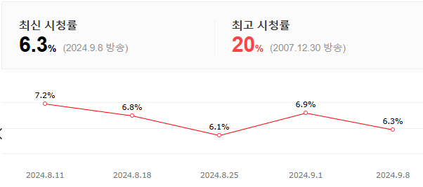 KBS '์ ๊ตญ๋ ธ๋์๋'์ ์ค๋ ์๊ฐ ๋์ ๊พธ์คํ ์ฌ๋๋ฐ์์จ ๊ตญ๋ฏผ ์๋ฅ ํ๋ก๊ทธ๋จ์ ๋๋ค. ์กํด ์ ์๋์ด ์งํํ๋ ์๊ธฐ์๋ ์์ฒญ๋ฅ ์ด ํ๊ท 9.4%์๋ค๊ฐ ๊น์ ์์ด ์งํํ๋ฉด์ 4%๋ก ๋ด๋ ค๊ฐ๋ค๊ฐ ์ต๊ทผ ๋จํฌ์์ผ๋ก ๊ต์ฒด๋๋ฉด์ ์์ฒญ๋ฅ ์๋ ํฐ ๋ณํ๊ฐ ์๊ฒผ๋๋ฐ์. ์๋์์ ์ต์ ์์ฒญ๋ฅ ์ ๋ฐ๋ก ํ์ธํด๋ณด์ธ์!